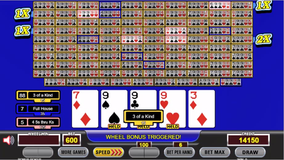 在上圖中,我正在玩紅利撲克,並在交易中獲得了三張相同的牌,我持有這張牌。