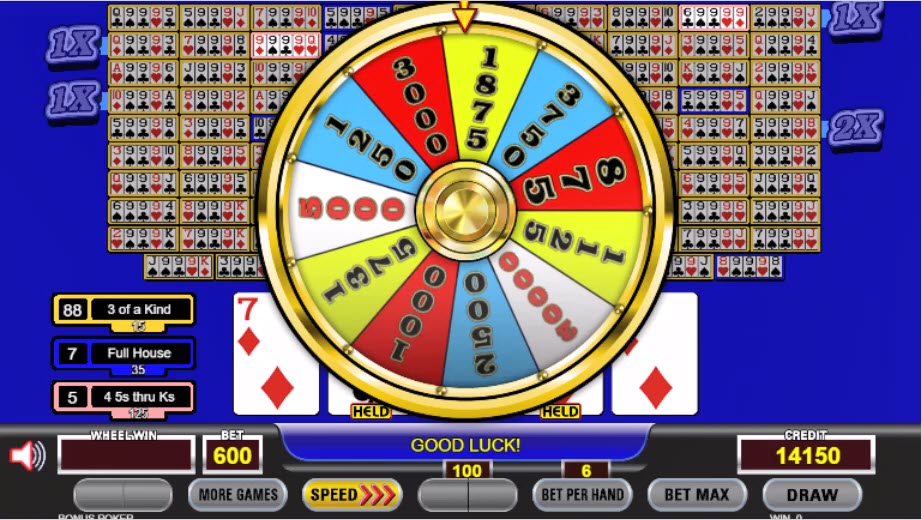 在包含百搭牌的遊戲中,所有牌型都視為自然牌,可觸發輪盤獎勵。例如,在「2222Q」百搭牌中,2222Q 或 QQQQK 可觸發獎勵,但 2QQQK 則不會。