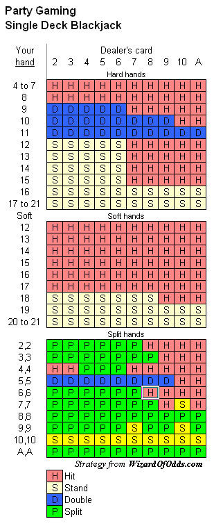 你能不能畫一張Party Poker單副牌二十一點的圖表?另外,最佳玩法的賠率是多少?