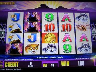 本遊戲有 4 5 = 1,024 種獲勝方式,因為每個轉軸上顯示四個位置。然而,在本例中,只有兩種獲勝方式,每種方式可贏得兩頭水牛。兩種方式都包括轉軸 1 上的一頭水牛。然後,轉軸 2 或轉軸 2 上第 1 行的水牛有 1 種獲勝方式,轉軸 2 或轉軸 2 上第 2 行的水牛也有 2 種獲勝方式。雖然遊戲有 4 3 = 64 種方式可以穿過轉軸 3 至 5 上的位置,但這並不重要。 「獲勝方式」僅計算穿過有助於獲勝的符號的方式。