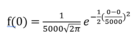 這簡化為 1/(5000*sqrt(2*π)) =~ 0.000797885 =~ 1 in 1253.314137。