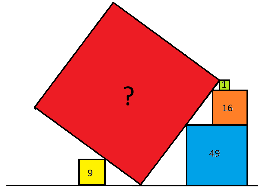上圖中,數字代表四個正方形的面積。紅色正方形的面積是多少?
