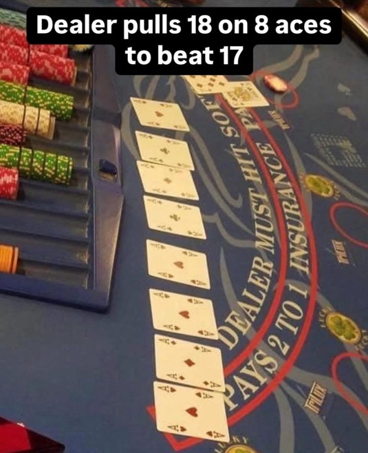 我在推特上看到這張圖片。莊家發到八張A的機率是多少?