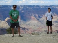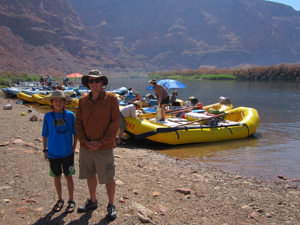 通常情況下,OARS 的最低年齡要求是 12 歲。我們當時參加的時候,我兒子 11 歲半。所以我申請了例外。我向 OARS 保證,他游泳很好,可以徒步走出峽谷,這一點可以從他 10 歲時我們倆在惠特尼山頂峰的照片(ULR 圖片)中看出。其實我更想去大峽谷的第二段,但 OARS 同意讓 Aidan 去,前提是我們要換到第一段,因為那裡的急流比較緩和。