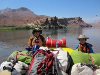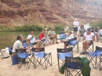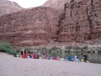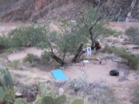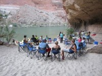 之後,阿曼達和其他幾家漂流公司的負責人討論了當晚的露營計畫。我們沒能離開幻影牧場太遠,因為我們大多數人第二天都要徒步離開峽谷。如果剩下的營地都被佔了,我們就會陷入困境。