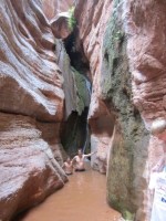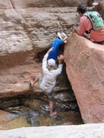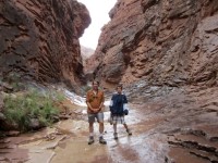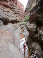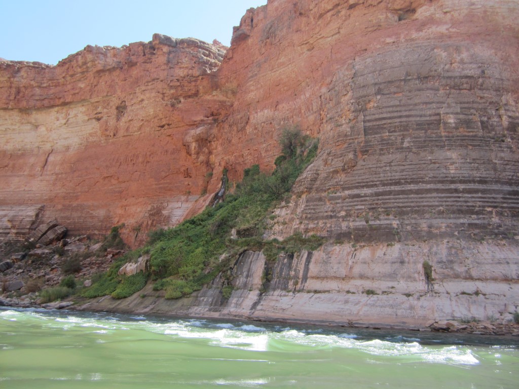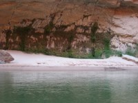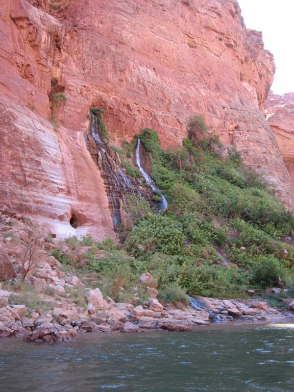 第二天,我們還經過了印第安迪克(Indian Dick) 。沒錯,地圖上就是這麼叫的。點擊連結可以查看比我拍的更好的照片。之後,我們經過了瓦西天堂(Vasey's Paradise) ,這是一股從峽谷側面湧出的泉水。這種情況通常發生在含水層與一層不透水的岩石接觸時,水會從這層岩石的上方流出。