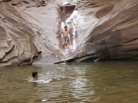 徒步旅行時,我們走進了北峽谷,這是附近數百個峽谷之一。我們的目的地是下方的天然岩坡和水潭。這解釋了為什麼我建議全天都穿著泳衣。