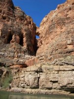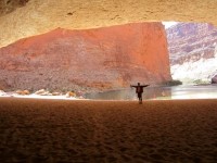 不久之後,我們在紅牆洞穴待了一會兒。這是一個巨大的洞穴,底部鋪著沙土,約翰·韋斯利·鮑威爾說它可以容納5萬人。恕我直言,鮑威爾先生,我估計這個數字比較接近5,000人。不過,我估計裡面的腿部和手肘空間可能比他想像的還要大。事實上,鮑威爾在內戰中失去了右臂,所以他想像的肘部空間可能更小。