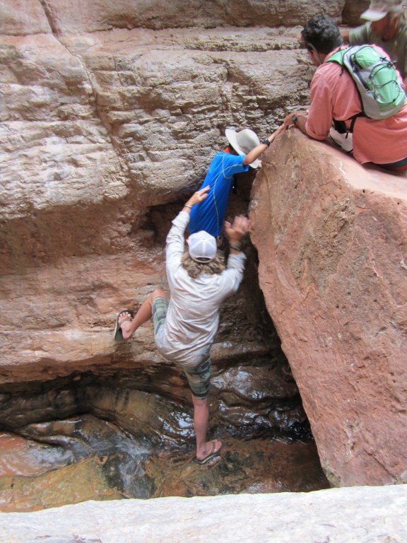 我們大約花了5個小時到達山頂。雖然不算比賽,但我們團隊用時大概在4到6小時之間。我們一行13人在光明天使旅館集合,享用了冰淇淋或午餐。另外7位沒有參加健行的客人繼續在河上進行第二段旅程。
