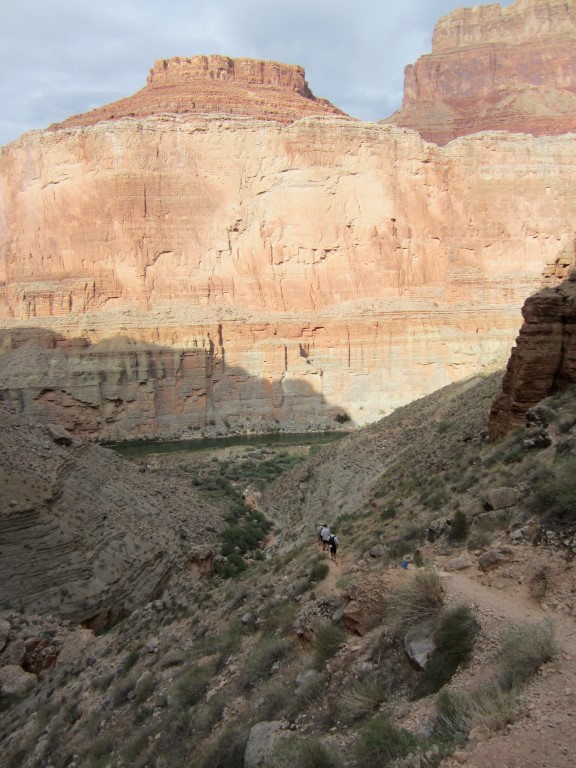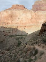 在我看來,從派普溪(Pipe Creek)的河流到南緣的健行是美國最棒的健行路線之一。單程七英里的路程會穿越不同的岩層和氣候帶。下半段大部分路段都處於陰涼處,大部分路段沿著一條小溪蜿蜒而行。半山腰是印第安花園(Indian Gardens),那裡是一個露營區,提供浴室和飲用水。剩下的路程大多是沿著陡峭的峽谷壁蜿蜒而行。這部分最好在上午10點之前或下午5點之後完成,以避免烈日。從印第安花園通往山腰的小徑上,有兩處衛生間和水源,分別距離山脊1.5英里和3英里。