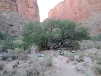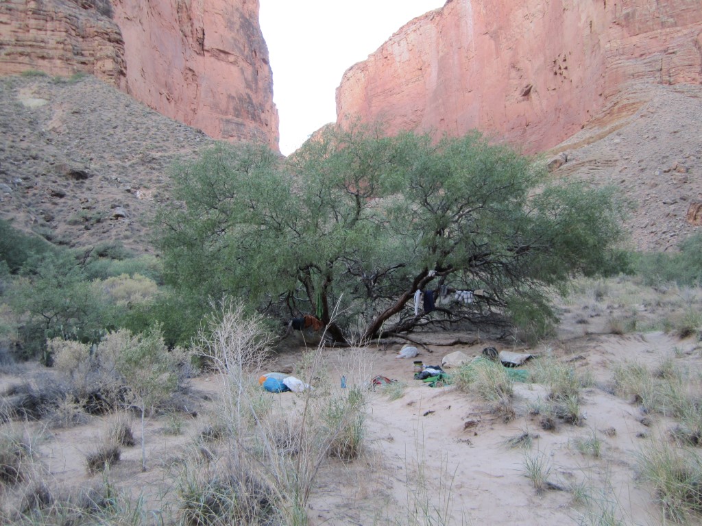 如果我沒記錯的話,我們在47英里和48英里之間的Upper Saddle營地紮營。我們到得早,所以有時間沿著峽谷徒步上行,到達下面的一個小瀑布和水潭。這個營地沙地不多,也不太陰涼,但有足夠的空間可以舒展筋骨。