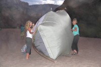 他們還為每兩人提供一頂雙人帳篷。不過,我們這裡不需要。天氣不夠冷,不需要帳篷。雖然八月是大峽穀雨水最多的月份,但我們只在下午4點到午夜之間經歷了短暫的季風。下雨的時候,我已經上床睡覺了,只在睡袋裡躲雨就很滿足了。第一天晚上,除了我之外,其他客人都搭了帳篷,但到了最後一晚,我竟然一個帳篷都沒看到。