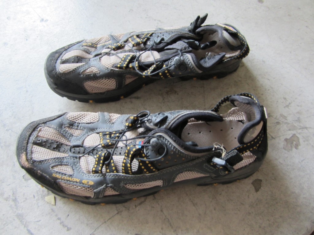 - 水鞋。這類鞋適合在水中行走,例如錫安峽谷(Narrows in Zion)。它們和普通鞋子一樣,但採用網狀材質,排水迅速。一雙優質的涼鞋(不是人字拖)就足夠了,但我們徒步了不少路程,所以這雙鞋更舒適,而且不那麼滑。
