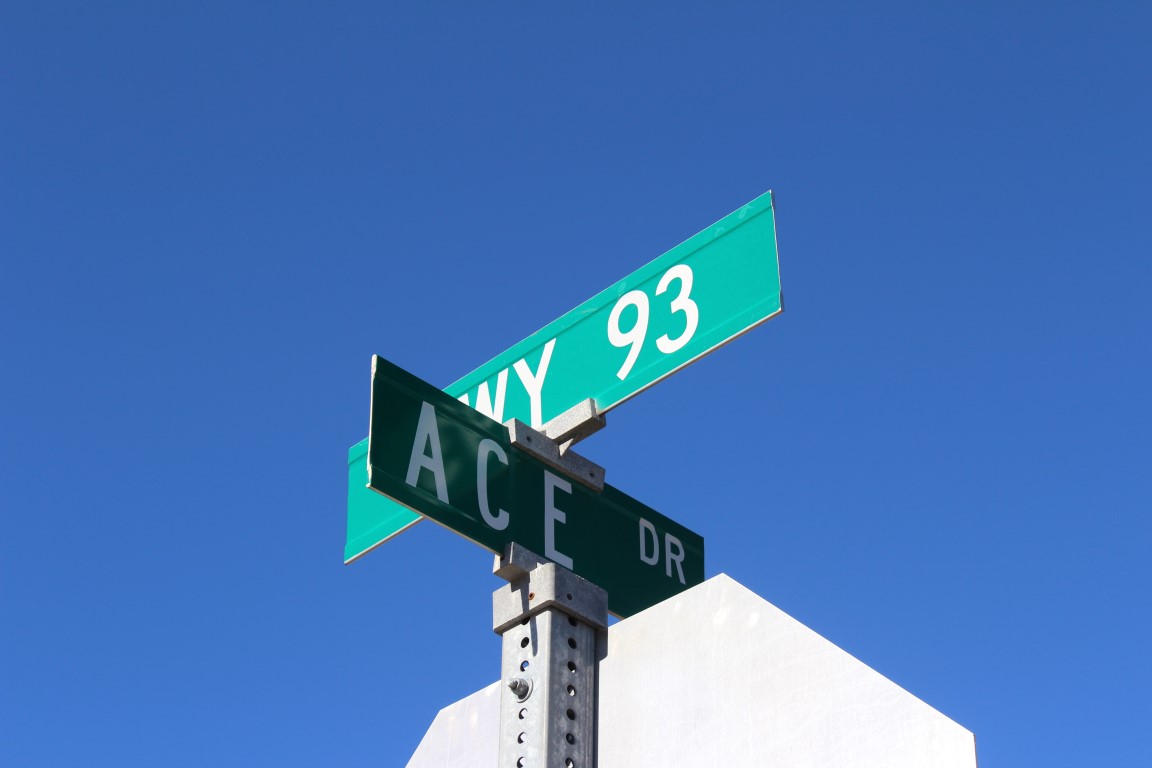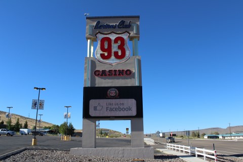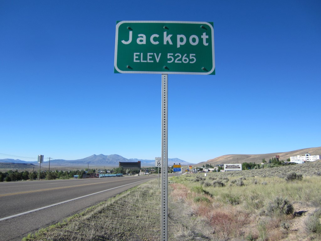 - 寫著「進入太平洋時區」的高速公路標誌牌就在 Jackpot 的正南邊。高速公路上有足夠的空間,可以將這個標誌牌放置在「歡迎來到內華達」標誌牌的正對面。