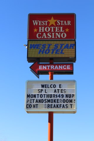 據我了解,賭場的名字是“Pony Express”,飯店的名字是“West Star Resort”。賭場很小,只有42台老虎機,沒有賭桌。相比之下,酒店很大。然而,在我看來,稱其為“度假村”似乎有點濫用。