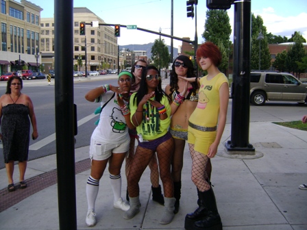 這跟我旅行前對鹽湖城的印象可不完全一樣。想想看,看到這群年輕女孩走在街上,我該有多驚訝。我跟賈斯汀說,我很想拍一張這樣的照片,但又不好意思開口。賈斯汀從不害羞,她一把搶過我的相機,問她們能不能拍張照,她們很客氣地擺了個姿勢。我喜歡左邊那位震驚的女士。
