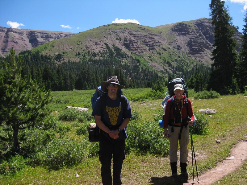 一路輕鬆愉快,我們找到了美元湖(Dollar Lake),雖然從小徑上看不到,但我們還是紮營了。我們在湖邊的樹林裡選了個好地方。儘管路上人來人往,但美元湖地區的人卻出奇地少。湖邊只有幾個人,更遠的地方也只有幾個。那天是星期五,所以去美元湖的人應該比從湖邊來的還要多。這感覺有點奇怪。