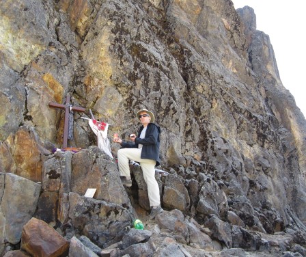 他說我的問題經常引起爭議,但根據他親自測量,我站的位置比實際上高了五米。這真是個好消息!我再也不用獨自穿越危險的冰原了。說完,我掏出相機,拍下了隨處可見的峰頂照片。我還熱烈祝賀了巴勃羅的客人,一位來自瑞典的女士,我在小屋裡認識了她。