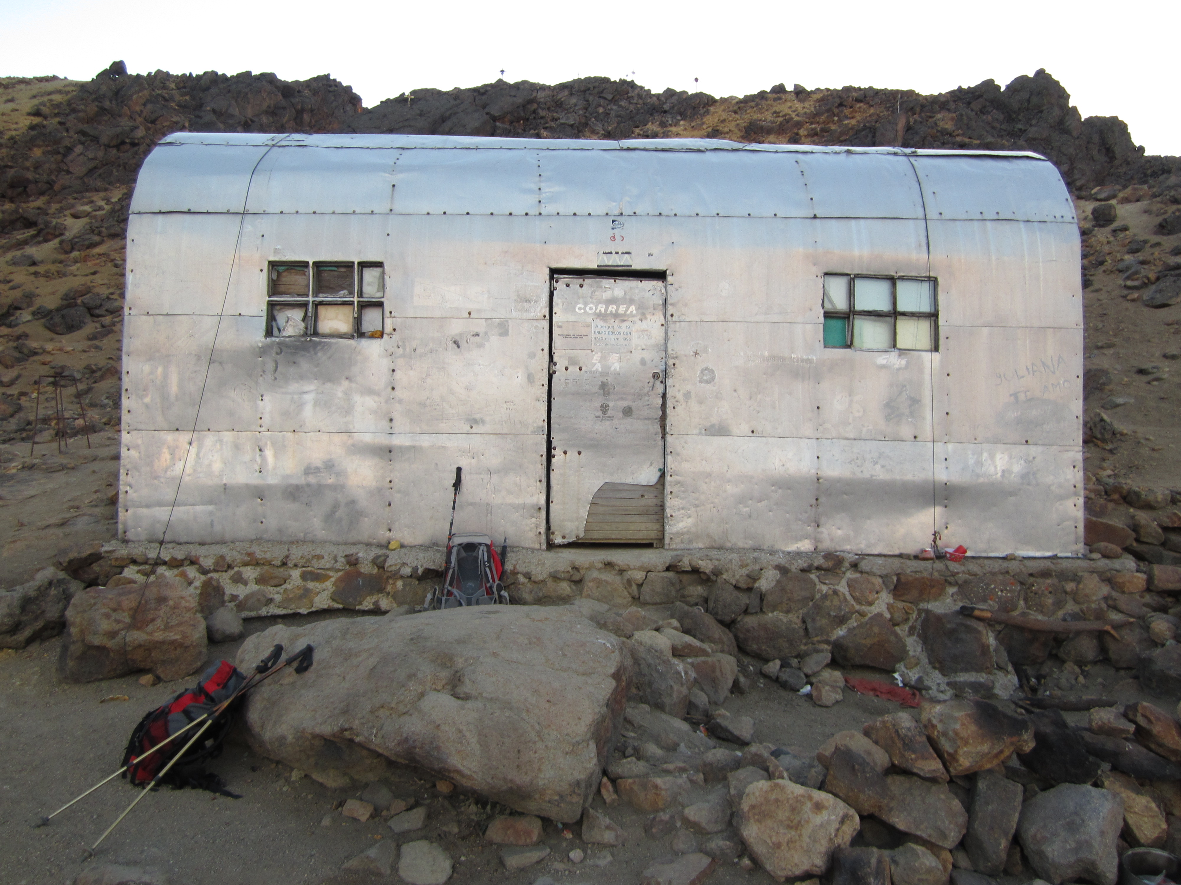 凌晨三點左右,我們終於在寒風凜冽中抵達了Refugio小屋,碰見另外三位登山客正準備出發。大約半小時後,他們離開了,小屋突然變得如此舒適、黑暗、安靜。儘管行程安排很緊湊,我們還是睡著了。有人貼心地給我留了一條墨西哥毯子,我用它保暖,頭盔當枕頭。