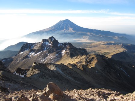 伊斯塔西瓦特爾山是一座休眠火山,位於墨西哥墨西哥城以東約40英里處。它海拔17,159英尺,是墨西哥第三高峰。它位於墨西哥第二高峰——目前仍在活動的波波卡特佩特爾山(海拔17,820英尺)的正北方。圍繞著這兩座火山,流傳著一個相當複雜的傳說,但簡單來說,伊斯塔西瓦特爾山的外形酷似一位沉睡的女子,因此在西班牙語中有時被稱為“睡美人”(La Mujer Dormida)。由於伊斯塔西瓦特爾山靠近墨西哥城,似乎經常有人攀登,但我懷疑只有一小部分登山者能夠登頂。這篇部落格文章記錄了我於2016年2月20日攀登伊斯塔西瓦特爾山的經歷。簡要事實: