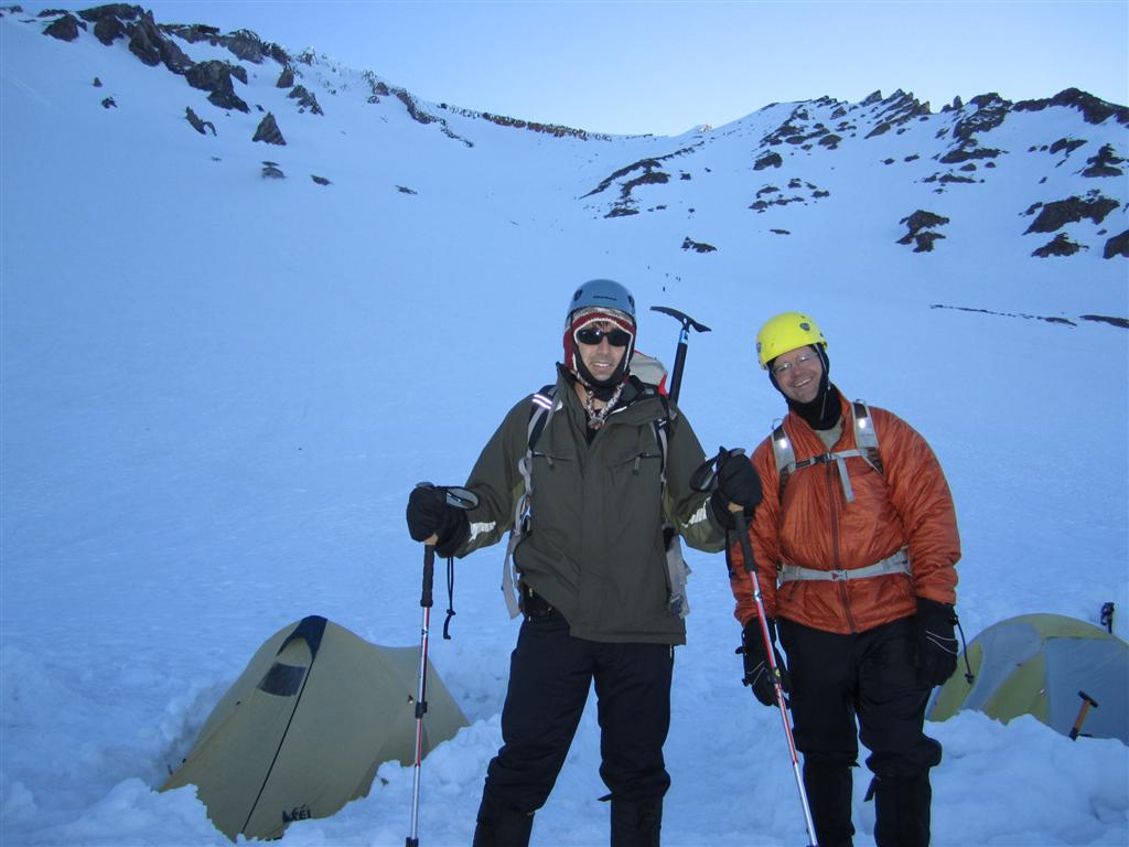 我們計劃當天凌晨12:30出發,大約凌晨4:30在海倫湖與另外兩人匯合,一起衝頂。我的兩個同伴在溫暖的車裡睡覺,而我則只能在停車場搭的帳篷裡湊合。由於大聲的談話、來來往往的車輛以及一些非常吵鬧的雪地摩托車,我只睡了大約兩個小時的淺睡眠。