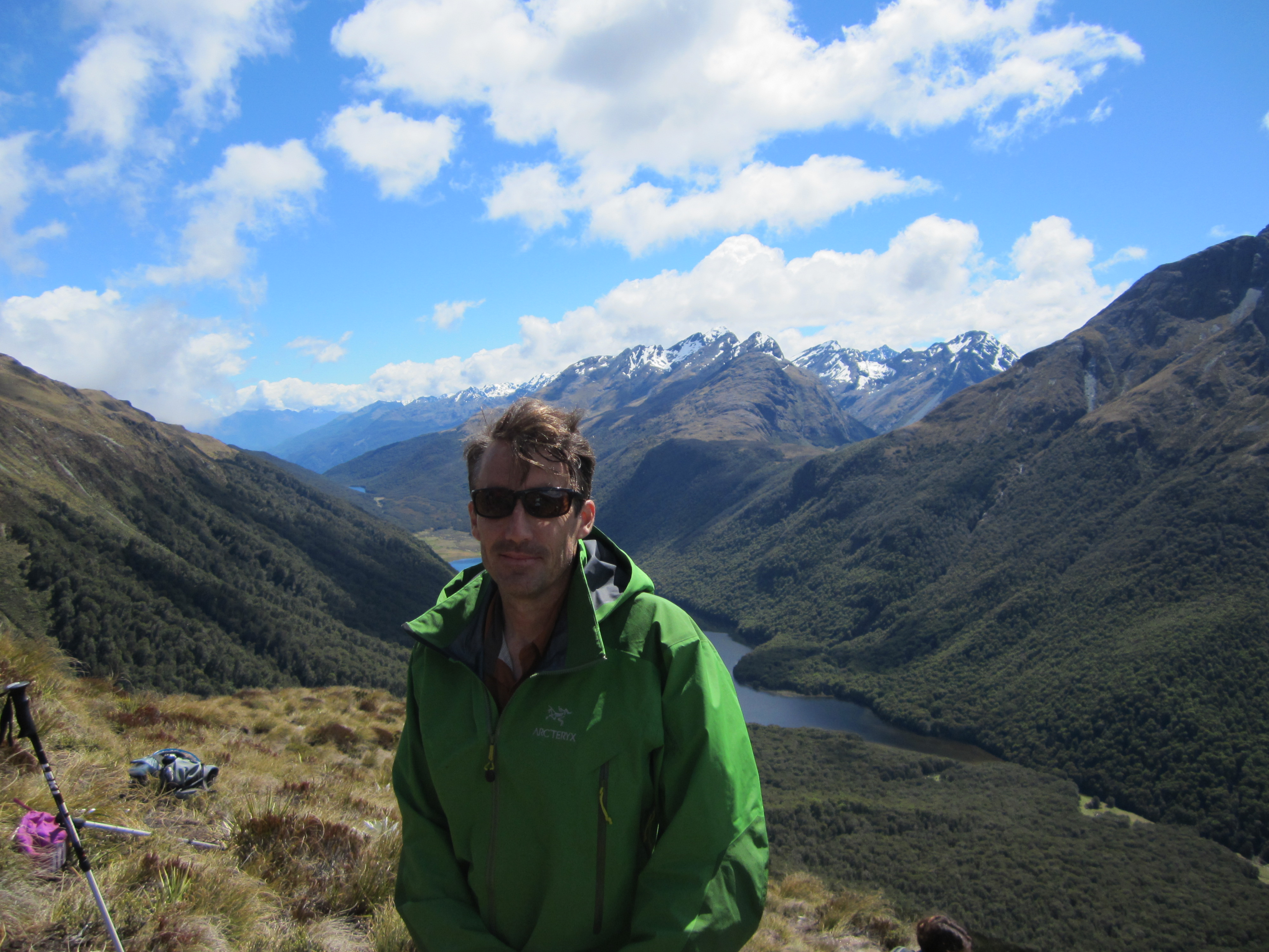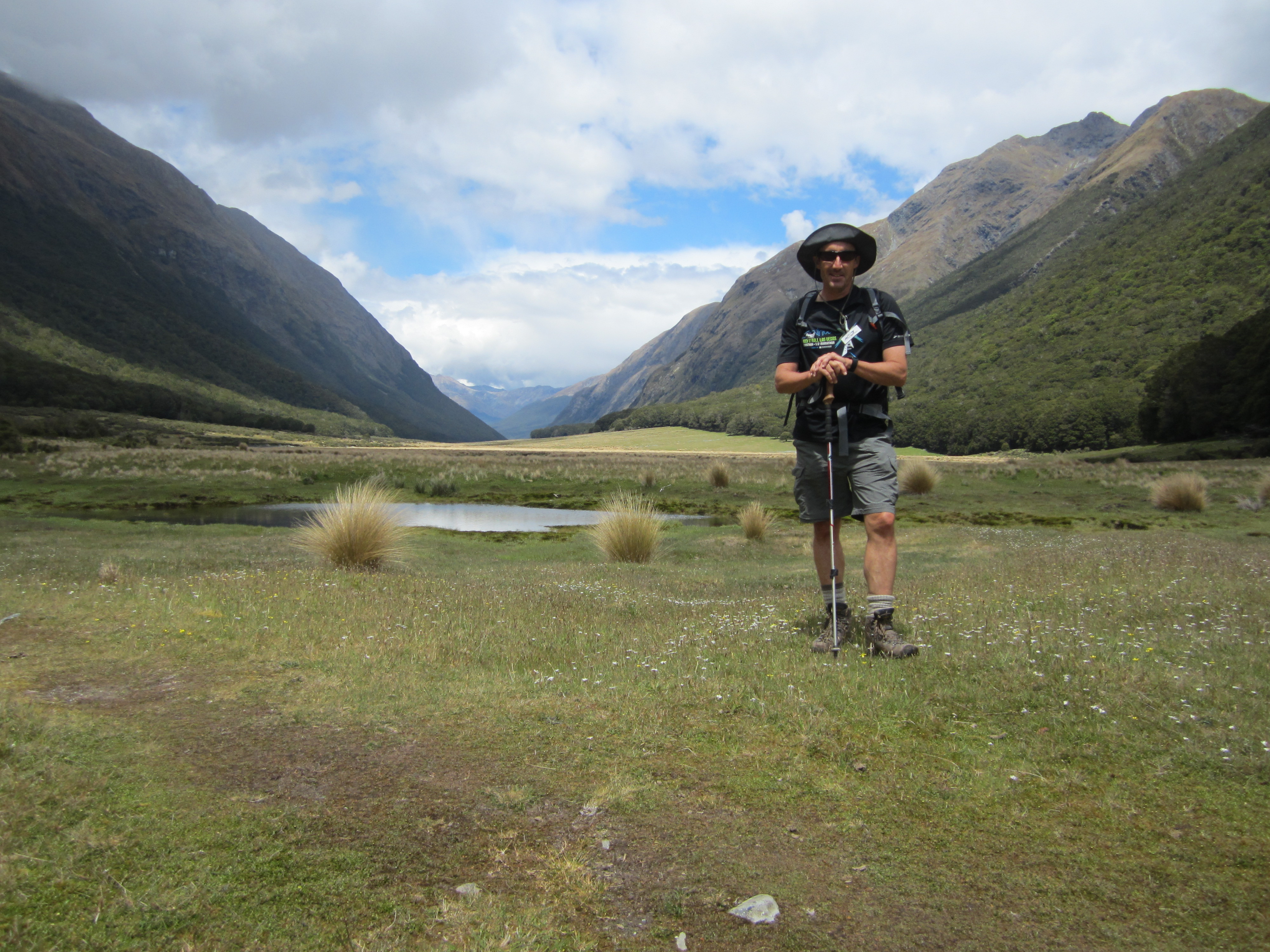 望著我們剛剛徒步穿過的山谷。那個戴白帽子的孩子是亞當。我給他出的所有數學題目他都答對了。