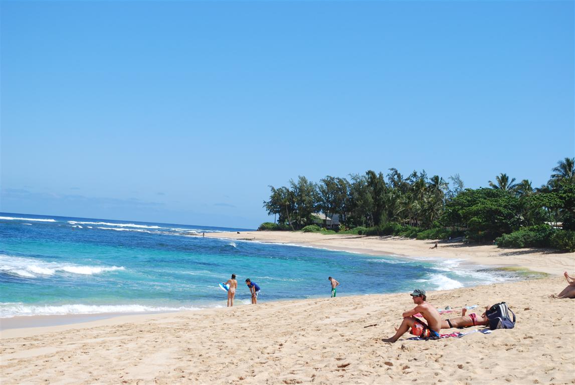 先不說這些泛泛之談,我們來聊聊一些特別的海灘。正如我之前提到的,北岸的海灘美得像明信片一樣,簡直完美。沿著卡美哈美哈高速公路隨意挑選一處,完全沒問題。順便說一句,別被「高速公路」這個詞迷惑了,它只是一條雙車道公路。我記得只有瓦阿盧阿以北才有一個紅綠燈。有時,這條路會走走停停。例如,有一次,一個漂亮的女孩正要過馬路,一條車道上的車停下來讓她過馬路,而另一條車道上的車卻沒有。於是她就站在那裡等著對面的人讓路,結果那位「好心人」的車堵住了交通,造成了嚴重的擁擠。