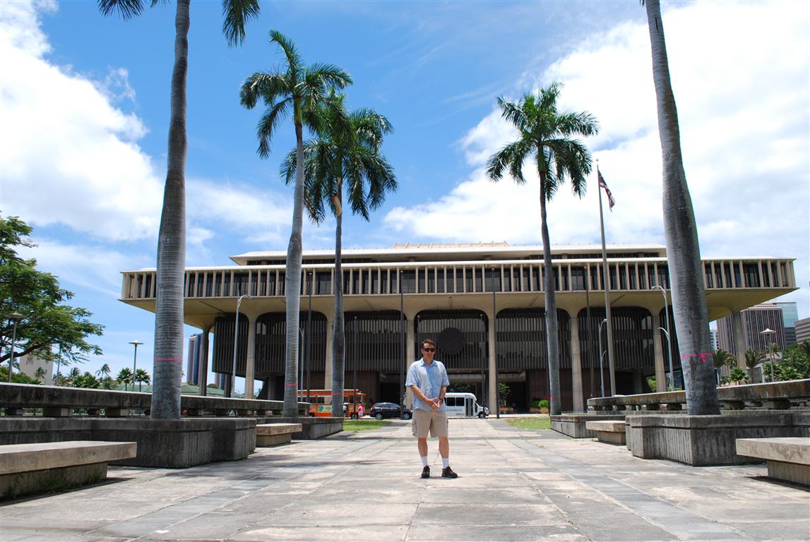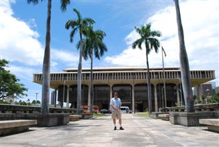 通常,州議會大廈看起來就像華盛頓特區國家議會大廈的縮小版。但檀香山的情況並非如此。那裡的議會大廈很不起眼,很容易被誤認為是辦公大樓。不過,他們很明智地在中間留出了空地,讓涼風吹進來,緩解正午的烈日。