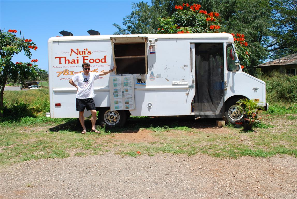 關於北岸的美食,我只想推薦三個字—Nui's Thai Food。正如你從圖片中看到的,它在Waialua圖書館旁的流動餐車上已經賣光了。我必須說,這是我吃過的最好吃的泰國菜。