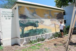 這家舊銀行被改造成 T 卹生意。 | 一家電腦商店側面的壁畫。 | |