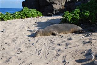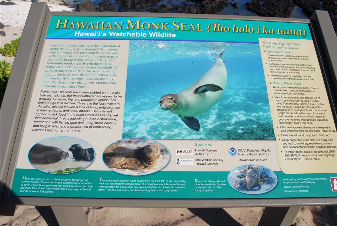 告示牌上有一個報告目擊情況的電話號碼,我回家後就撥打了。一位來自美國國家海洋暨大氣總署(http://www.noaa.gov/)的女士,一個我以前從未聽說過的政府機構,似乎很想給我拍張照片。後來,她根據我看到的那隻海豹背上的漂白序號(N26)回覆了我。它是一隻名叫班尼的雄性海豹,2002年出生於考艾島,喜歡在夏威夷西部群島之間穿梭,但大部分時間都待在歐胡島。