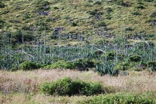 雖然徒步旅行的大部分路程都是在烈日下艱難跋涉,但當你接近終點時,你會感到收穫滿滿。一道非常堅固的圍欄,想必花了巨資修建,保護著島嶼西北角的一大片區域。一扇雙開門供徒步者進出。進入圍欄後,有一條指定的步道,還有許多標誌牌,提醒你不要打擾野生動物,尤其是信天翁和僧海豹。這讓我想起了我最喜歡的一個冷知識問題:高爾夫比賽中低於標準桿三桿叫什麼?我從遠處看到三對正在築巢的信天翁和僧海豹。