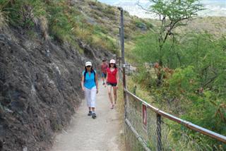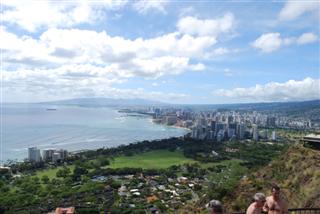 登頂鑽石山無疑是夏威夷最受歡迎的健行路線。眾所周知,它是威基基海灘東側的火山口,在無數的明信片上都能看到它的身影。從地面上看,你很難意識到鑽石山其實是一座火山的頂端。從空拍照片更容易看到它的全貌,例如這張。從檀香山開車到鑽石山只需一小段路程,停車費為1美元。到達停車場後,您就已經身處火山中心,並且已經到達山頂。