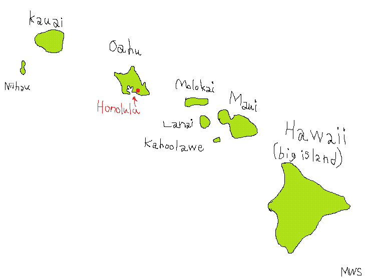 我的校對員克里斯蒂建議我加一段話來解釋瓦胡島和夏威夷之間的差異。對於那些不熟悉夏威夷地理的人來說,夏威夷有八個主要島嶼。瓦胡島是其中之一,擁有夏威夷75%的人口,但陸地面積僅佔夏威夷的6%。我認為它是所有島嶼中人口最多的,因為珍珠港是一個天然的便利港口,氣候宜人,既不太濕潤也不太乾燥,而且地勢相對平坦。檀香山除了是州首府的所在地外,也是夏威夷王國在被美國征服之前的最後一個首都。我注意到,很多遊客到瓦胡島旅遊,你問他們去了哪個島,他們甚至不知道,只會說「檀香山所在的那個島」。所以,你懂的。