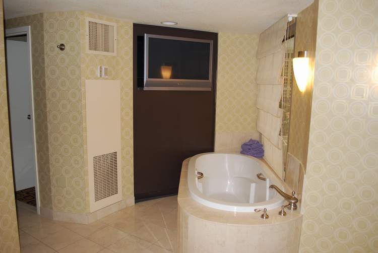 樓上的VIP辦理處有點難找,但絕對值得。根本不用等,我直接就過去了。我升級到北塔的房間非常棒。房間有兩台大螢幕平面電視、一間超大的浴室、充足的壁櫥空間、一個坐浴盆,還能近距離欣賞貝拉吉奧噴泉的景色,雖然有點被遮擋。床不是加厚床墊,但仍然很舒服,床單也很柔軟。唯一不滿意的是床邊的收音機鬧鐘大約每小時會發出一次短暫的震動聲,有時會把我吵醒。