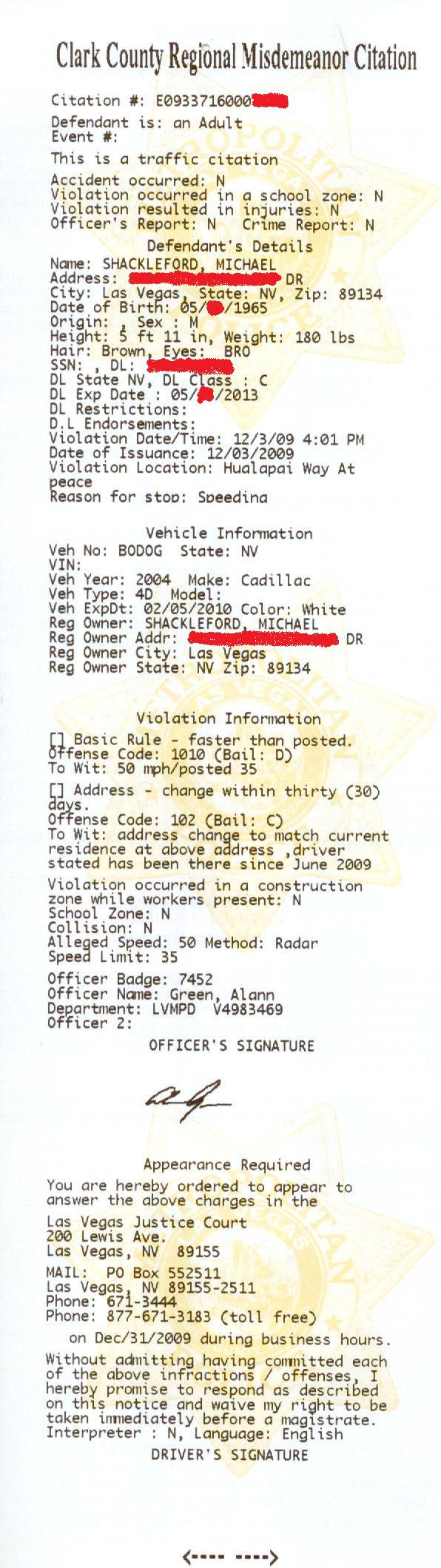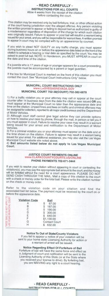 回家後,我聯絡了Ticket Whackers。拉斯維加斯到處都有類似Ticket Whackers這樣的法律服務機構,可以對抗交通罰單。我聽說他們會把罰單降到「違規停車」的級別,這樣罰款會少一些,而且不會在記錄上加分。至於他們是怎麼做到的,我至今仍不太清楚。我在我的“拉斯維加斯巫師”網站上詢問了這個問題,並得到了很多好評,但沒有直接聯繫到任何熟悉內華達州交通法庭的人。