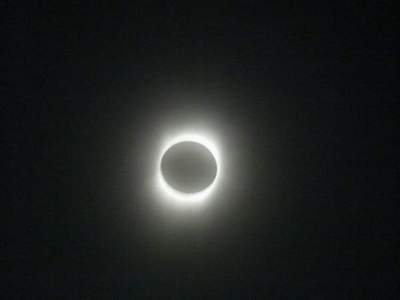 言語無法形容陽光最後幾秒我內心的期待。漸漸地,月牙越來越細,天空也越來越暗。當只剩下一絲陽光時,我不顧多年來的勸告,摘下了眼鏡。我用肉眼觀察了幾秒鐘。這時,那些戴著望遠鏡和護目鏡的人可以看到太陽在月山之間移動。對我來說,它就像天空中一個極其明亮的點,就像一顆星星。