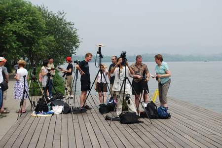 22日清晨,杭州下起了傾盆大雨。凌晨五點左右,我閒著沒事,漫步走進飯店大廳,發現那裡擠滿了穿著日食T恤的年輕人,手裡拿著精緻的望遠鏡和相機。儘管天氣不好,他們看起來卻興高采烈,興高采烈,準備出發。我親眼目睹他們擠進麵包車,不知要去哪裡。也許他們要去地勢更高的地方,或是去城裡附近觀看相關的潮汐。