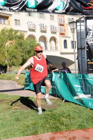 回到飯店停車場,我把自行車放好,然後開始跑步。這時,我突然看到很多其他選手,離我不遠。我以為自己落後了,但顯然並非如此。跑步部分一開始是爬上一個陡峭的山坡,有些選手是在步行上山。於是我抓住機會超過了幾個人,很高興自己還能跑下去(雙關語)。然後我追上了我們亞歷山大·道森學校組裡一個比我年輕得多的傢伙,我知道他的狀態很好。他起跑時比我晚了三分鐘,所以我很慶幸我當時的成績只比他快了三分鐘。