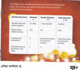 卡片分為三個等級:單鑽、雙鑽和三鑽。只需7,500的流水即可獲得雙鑽,45,000的流水即可獲得三鑽。與拉斯維加斯相比,獲得更高等級的卡片相當容易。雙鑽會員可獲得額外5%的“獎勵積分”,三鑽會員可獲得10%的獎勵積分。