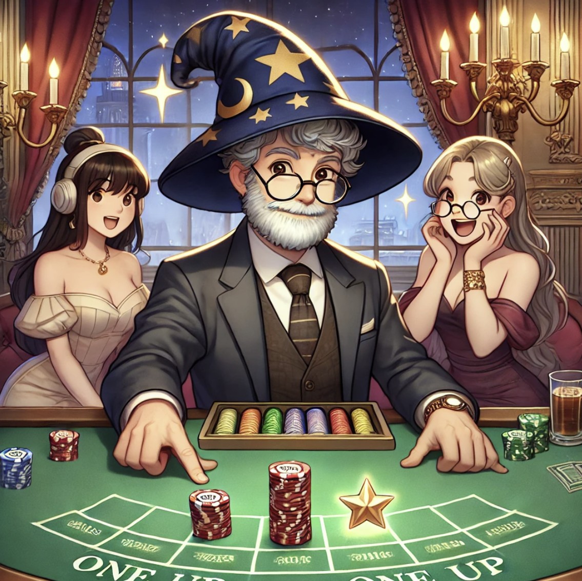 One Up 是免佣金百家樂中的一種附加賭注,用於押注莊家獲勝的三張牌點數為 7。這種百家樂通常被稱為EZ 百家樂,但對於 One Up 附加賭注,遊戲名稱為 Fortune 7。