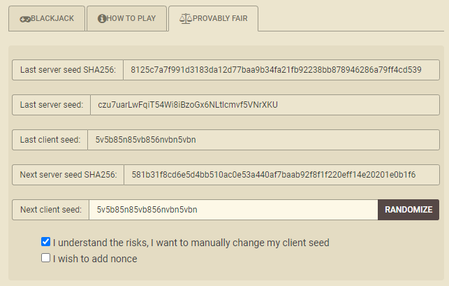 該程式將把伺服器種子雜湊值與您下注前提供的內容以及遊戲中發出的牌進行比較。