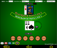 越來越多的賭桌出現了賠率低於21點3比2的現象。大多數賭桌的賠率是6比5,但也有一些賠率是1比2或7比5的賭桌。我估計,拉斯維加斯目前10%的「21點」賭桌的賠率低於3比2。在我看來,只有賠率3比2的遊戲才配得上“21點”,其餘的都屬於“21點”遊戲,包括超級趣味21點和西班牙21點。無論其他規則如何,你都應該要求至少3比2的21點。你應該始終檢查賭桌的毛氈以確保無誤,如果毛氈上沒有標明,請尋找一個標誌。如果沒有任何標示21點贏錢的標誌,那就問問吧。