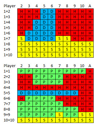 玩家 卡 1 | 玩家 卡 2 | 經銷商 明牌 | 站立 | 打 | 雙倍的 | 分裂 |