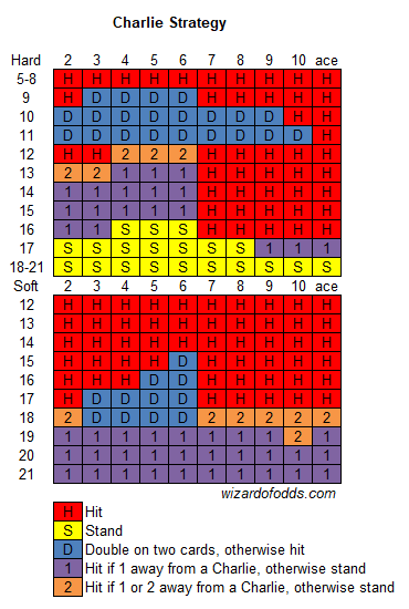 正如我的二十一點部分所示,七張牌查理規則下的莊家優勢降低了 0.01%,六張牌查理規則下的莊家優勢降低了 0.16%,五張牌查理規則下的莊家優勢降低了 1.46%。