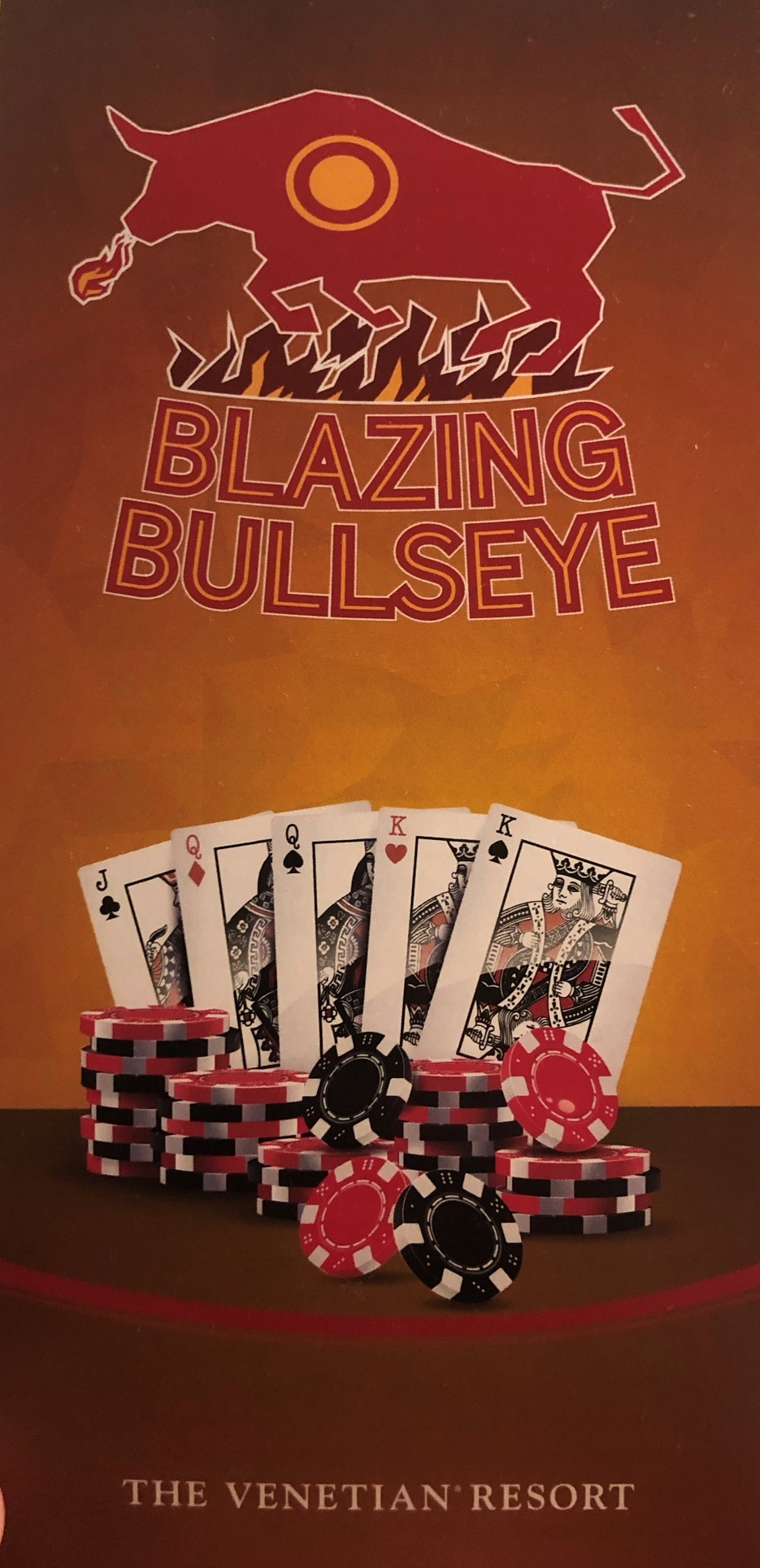 熾焰靶心 (Blazing Bullseye) 於 2020 年 12 月 11 日在威尼斯人酒店開始實地測試。除了西貢五張牌 (Saigon 5 Card)之外,很難將它與其他任何遊戲進行比較。儘管規則相當複雜,但它是一款簡單的機會遊戲。