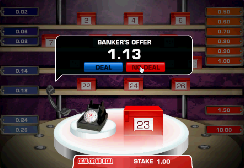 Deal or No Deal 是一款根據熱門電視劇改編的賭場遊戲。其網路賭場版本由 Dragonfish 開發,該公司為網路賭場提供軟體。根據 YouTube 視頻,英國似乎也有類似的老虎機遊戲。本頁面僅介紹網路版本。