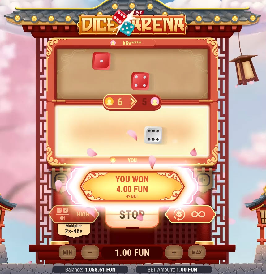 Dice Arena 是一款簡單的骰子遊戲,我在 2025 年 7 月 7 日在 Bovada 互聯網賭場注意到了它。目標是獲得比莊家更高的骰子總數。