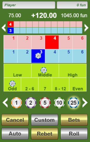 - 低點 — 至少有一個骰子為一或二。賠付 4 至 5。