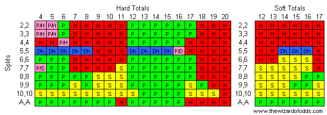 - P/D = 若分牌後允許加倍則分牌,否則加倍